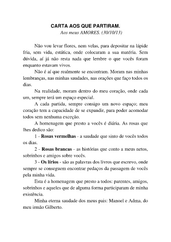 lembranças, nas minhas saudades, nas orações que faço todos os