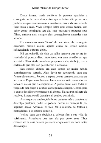 sofrimento. Acreditava que sem ela por perto, seus filhos
